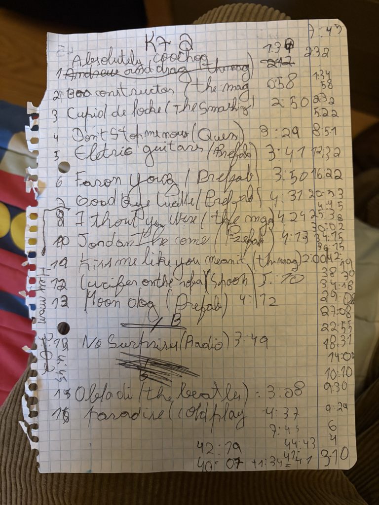 Antes disto tudo também é preciso pensar que tipo de cassete vamos gravar. Gosto de arranjar conceitos. Por exemplo, já gravei uma cassete em que a primeira letra do título de cada canção segue a ordenação do alfabeto.
