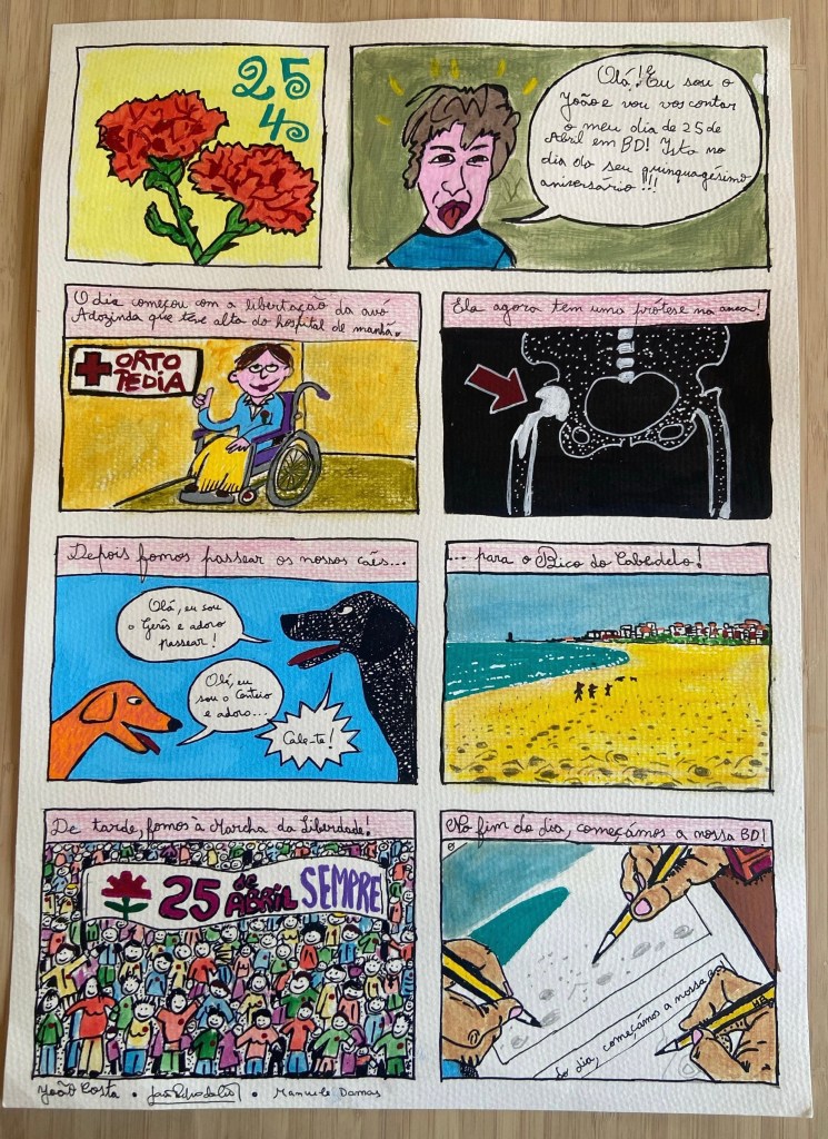 Para celebrar os 25 anos do 25 de Abril, eu e os meus pais fizemos uma BD que agora enfeita a parede da nossa sala.